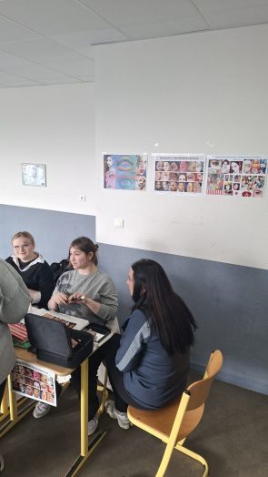 En parallèle, l’option maquillage a mis en lumière son savoir-faire en réalisant des maquillages sur les élèves et personnel.le.s, révélant créativité et maîtrise technique. Cette animation a rencontré un vif succès et a contribué à faire de cet espace un lieu à la fois pédagogique, artistique et convivial.