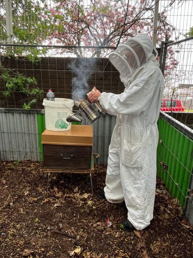 Lors de l’installation des 2 ruches, les éco-délégués ont pu poser leurs questions à l’apiculteur, observer les abeilles et la reine, toucher certains éléments des ruchers, suivre les différentes étapes et aider à l’installation des 2 ruches.